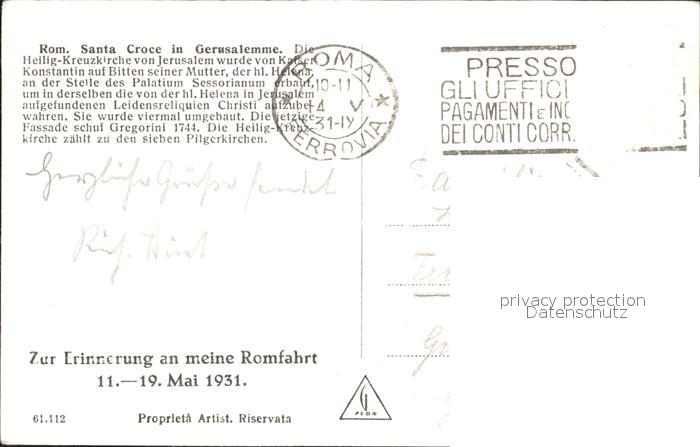 old postcard Roma Rom Santa Croce in Gerusalemme postalisch gelaufen Erhaltung siehe scans