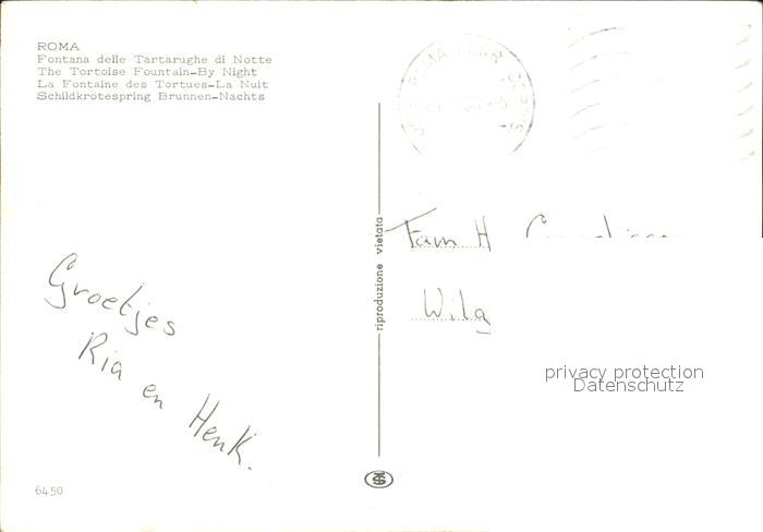 old postcard Roma Rom Schlidkroetenbrunnen bei Nacht postalisch gelaufen Erhaltung siehe scans