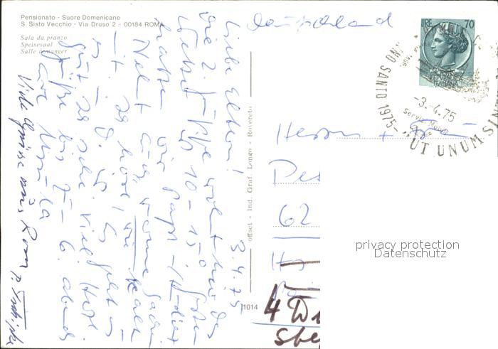 old postcard Roma Rom Speisesaal Pensionato Suore Domenicane postalisch gelaufen Erhaltung siehe scans