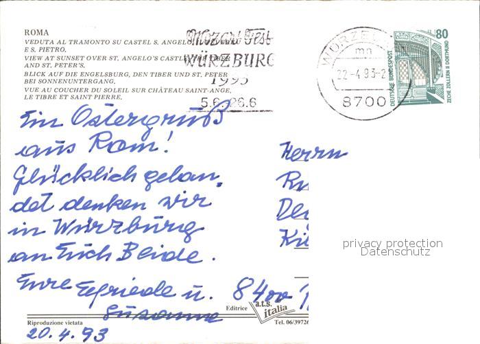 old postcard Roma Rom Sunset St. Angelos Castello Tiber postalisch gelaufen Erhaltung siehe scans