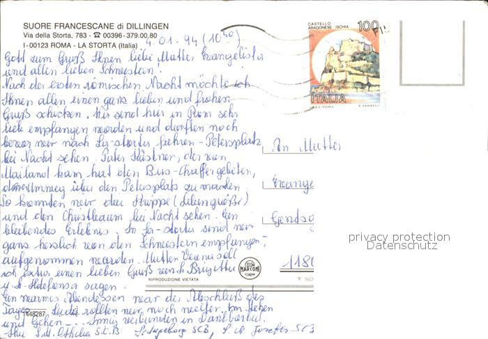 old postcard Roma Rom Suore Francescane di Dillingen postalisch gelaufen Erhaltung siehe scans