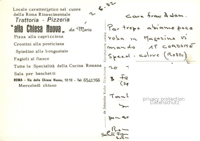 Roma Rom Trattoria Pizzeria da Mario postalisch nicht gelaufen Erhaltung siehe scans [KathaD81]