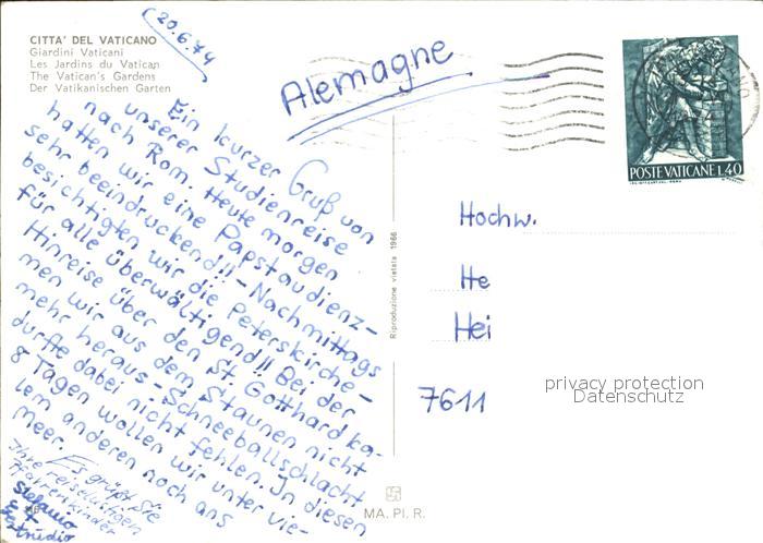 old postcard Roma Rom Vatikanische Garten postalisch gelaufen Erhaltung siehe scans