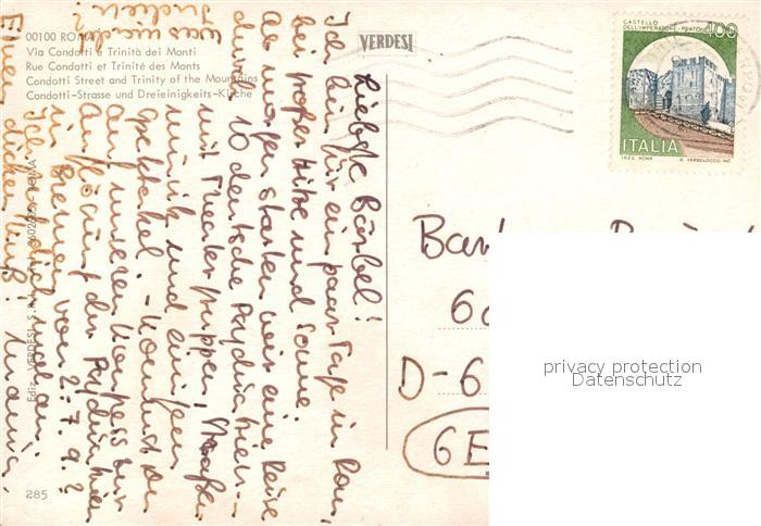 old postcard Roma Rom Via Condotti e Trinita dei Monti postalisch gelaufen Erhaltung siehe scans [WerneD78]
