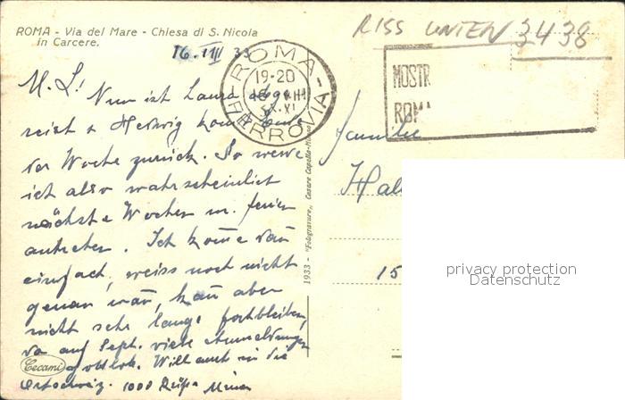 old postcard Roma Rom Via del Mare Chiesa di S Nicola Carcere postalisch gelaufen Erhaltung siehe scans