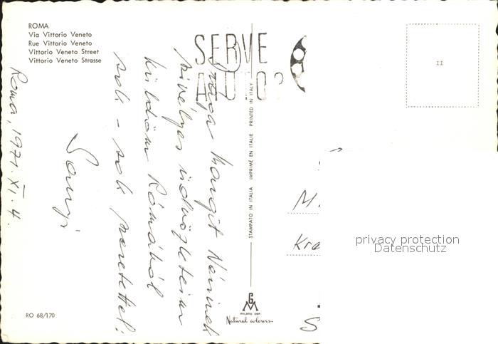 old postcard Roma Rom Via Vittorio Veneto postalisch gelaufen Erhaltung siehe scans