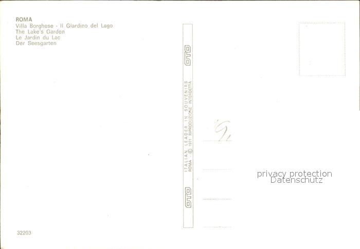 Roma Rom Villa Borghese Giardino del Lago postalisch nicht gelaufen Erhaltung siehe scans