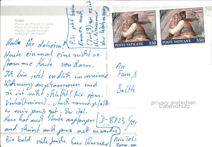 old postcard Roma Rom Volksplatz bei Nacht postalisch gelaufen Erhaltung siehe scans