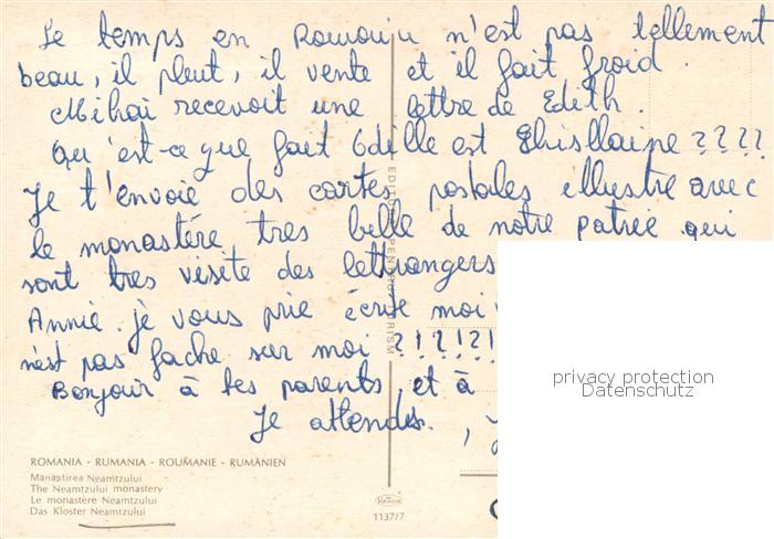 Romania Kloster Neamtzului postalisch nicht gelaufen Erhaltung siehe scans [WerneD78]