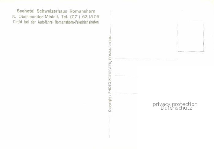 12604406 Romanshorn Bodensee Seehotel Schweizerhaus Autofaehre Romanshorn Friedrichshafen postalisch nicht gelaufen Erhaltung siehe scans [KathaD79] KatCode: 11470200600966