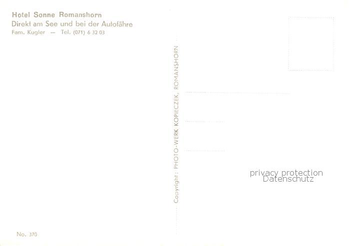 13853410 Romanshorn TG Hotel Gasthof zur Sonne postalisch nicht gelaufen Erhaltung siehe scans [FriedD77] KatCode: 11470200600966
