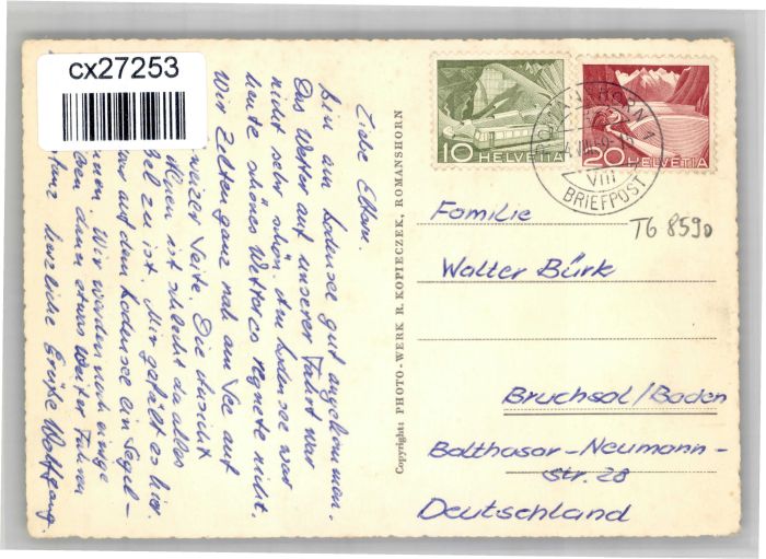 10849595 alte Postkarte Romanshorn postalisch gelaufen KatCode: 11470200600966