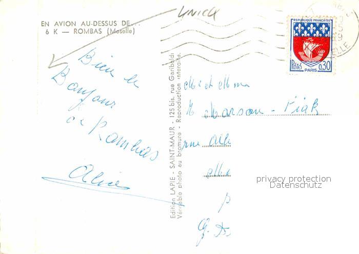 12659895 carte postale Rombas Moselle Fliegeraufnahme postalisch gelaufen Erhaltung siehe scans [LiesaD40] KatCode: 11170057457591