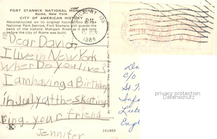 73061561 old postcard Rome New York Fort Stanwix National Monument Air view postalisch gelaufen Erhaltung siehe scans [WerneD78] KatCode: 14140340000000