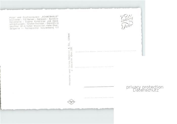 72078792 Romkerhalle Hotel und Grossrestaurant Okertalsperre Hoher Wasserfall postalisch nicht gelaufen Erhaltung siehe scans KatCode: 11110003153005