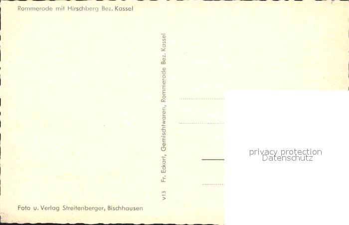 72072366 Rommerode Ortsansicht mit Kirche Hirschberg postalisch nicht gelaufen Erhaltung siehe scans KatCode: 11110006636004