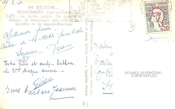 13503859 carte postale Romorantin-Lanthenay Jardin public Monument aux morts Sauldre Sous Prefecture postalisch gelaufen Erhaltung siehe scans [FriedD77] KatCode: 11170041341194