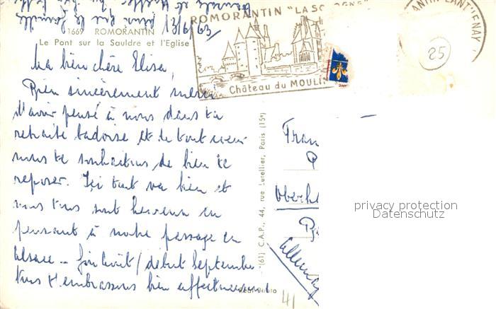 13503842 carte postale Romorantin-Lanthenay Pont sur la Sauldre Eglise postalisch gelaufen Erhaltung siehe scans [FriedD77] KatCode: 11170041341194