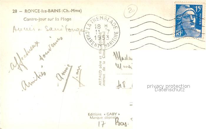 13494857 carte postale Ronce les Bains Contre jour sur la plage postalisch gelaufen Erhaltung siehe scans [FriedD77] KatCode: 11170017217452