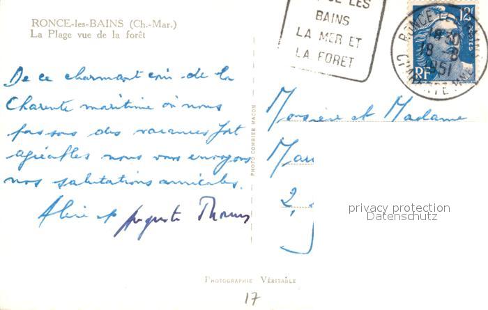 13556462 carte postale Ronce les Bains La plage vue de la forêt postalisch gelaufen Erhaltung siehe scans [FriedD77] KatCode: 11170017217452