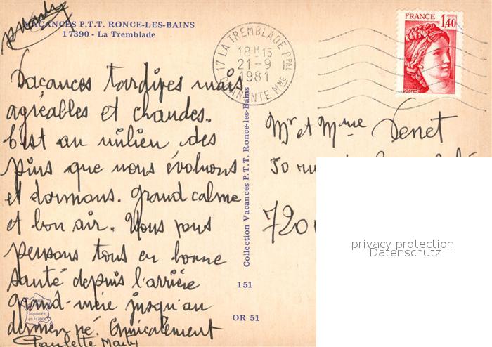 13583239 Ronce les Bains Vacances PTT La Tremblade postalisch gelaufen Erhaltung siehe scans [WerneD78] carte postale Wern Katcode 11170017217452