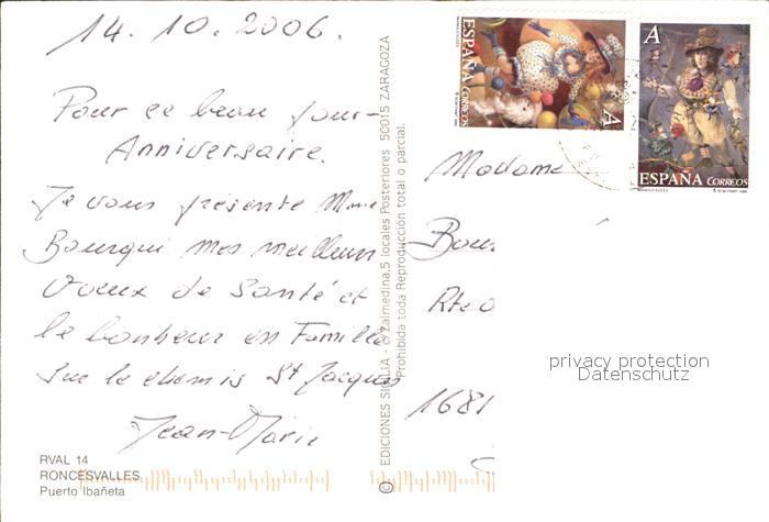 old postcard Roncesvalles Puerto Ibaneta postalisch gelaufen Erhaltung siehe scans
