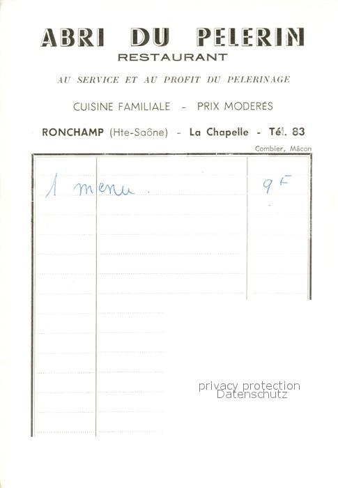 13717821 Ronchamp Haute Saone Abri du Pelerin Restaurant postalisch nicht gelaufen Erhaltung siehe scans [WerneD78] Wern Katcode 11170070170451