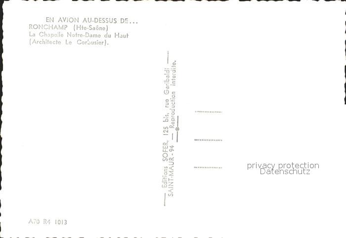 12250188 Ronchamp Haute Saone Chapelle Notre Dame du Haut Architecte La Corbusier postalisch nicht gelaufen Erhaltung siehe scans KatCode: 11170070170451