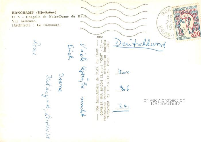 13745685 Ronchamp Haute Saone Fliegeraufnahme Chapelle du Notre-Dame du Haute postalisch gelaufen Erhaltung siehe scans [LiesaD40] carte postale Lies Katcode 11170070170451