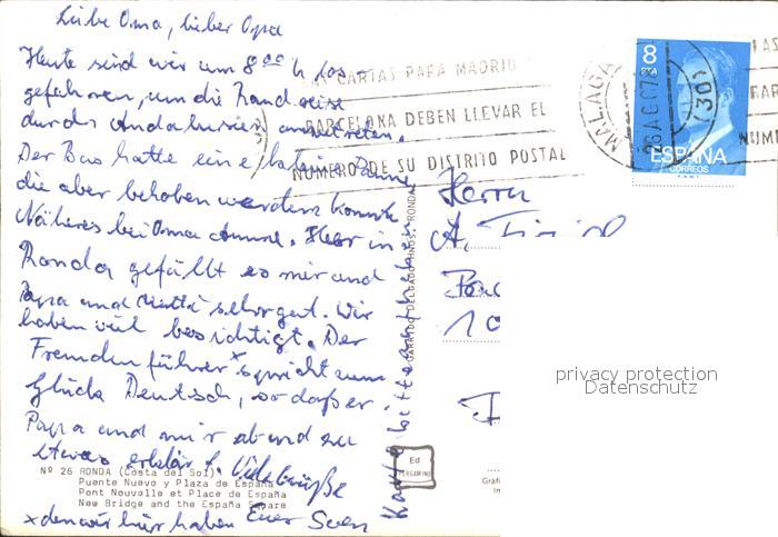 old postcard Ronda Andalucia Puente Nuevo y Plaza de Espana postalisch gelaufen Erhaltung siehe scans