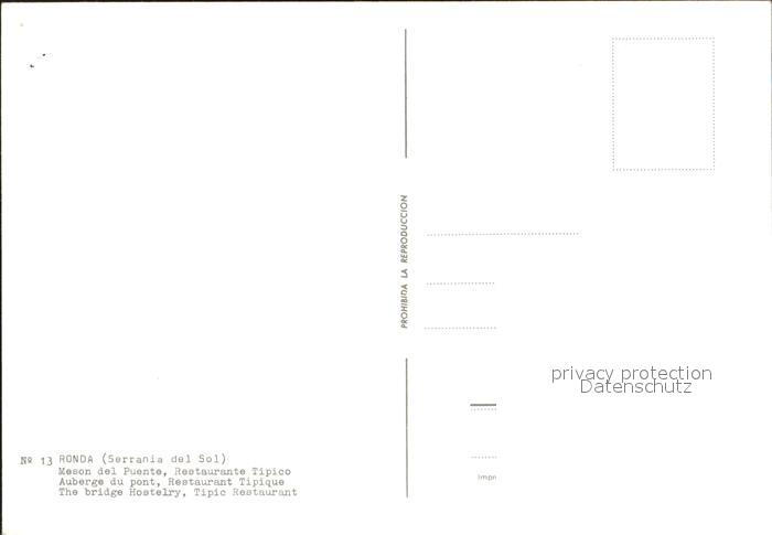Ronda Andalucia Restaurant Serrania del Sol postalisch nicht gelaufen Erhaltung siehe scans
