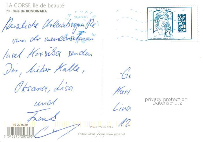 13357213 carte postale Rondinara La Baie de Rondinara vue aérienne postalisch gelaufen Erhaltung siehe scans [FriedD77] KatCode: 1117002A12A004