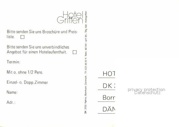 Ronne Hotel Griffen Bootshafen postalisch nicht gelaufen Erhaltung siehe scans [WerneD78]