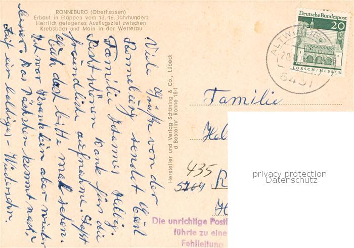 73814326 alte Postkarte Ronneburg Hessen Burg Teilansichten Gaststaette Restaurant postalisch gelaufen Erhaltung siehe scans [FriedD77] KatCode: 11110006435024