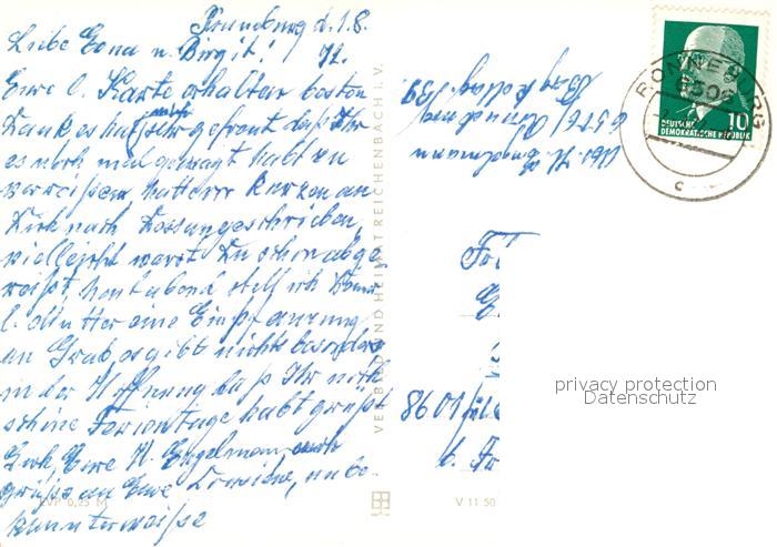 73102476 alte Postkarte Ronneburg Thueringen Joliot Curie Oberschule HO Wismut Speisegaststaette OdF Denkmal postalisch gelaufen Erhaltung siehe scans [KathaD81] KatCode: 11110016076061