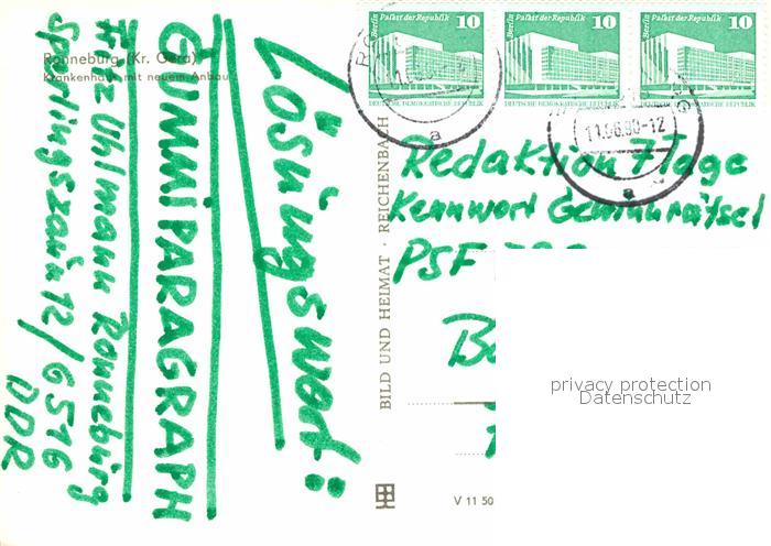 72760248 alte Postkarte Ronneburg Thueringen Krankenhaus mit neuem Anbau postalisch gelaufen Erhaltung siehe scans [FriedD77] KatCode: 11110016076061