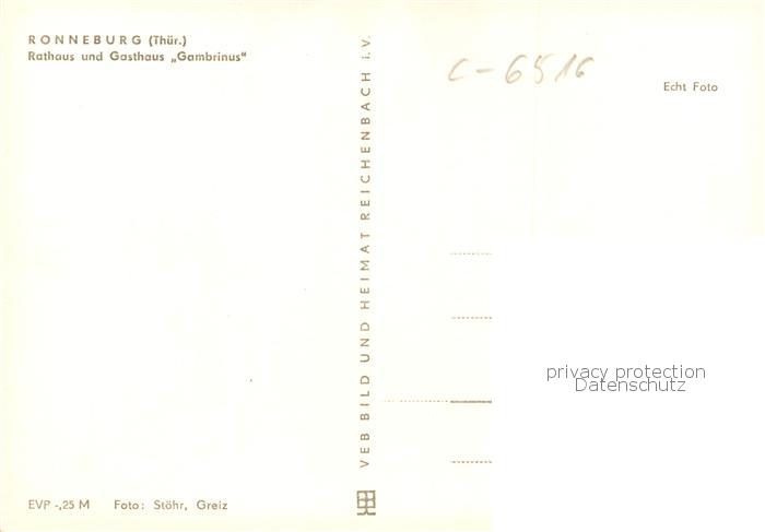 73854423 Ronneburg Thueringen Rathaus und Gasthaus Gambrinus Fachwerkhaus postalisch nicht gelaufen Erhaltung siehe scans [FriedD77] KatCode: 11110016076061