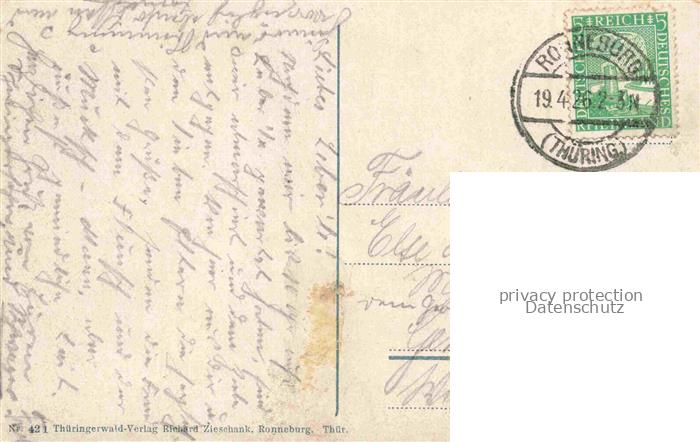 74029877 alte Postkarte Ronneburg Thueringen Sachs.-Altenburger Bismarcksaeule auf dem Reusterberge postalisch gelaufen Erhaltung siehe scans [FriedD77] KatCode: 11110016076061