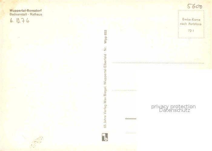 72887615 Ronsdorf Badeanstalt Rathaus postalisch nicht gelaufen Erhaltung siehe scans [WerneD78] KatCode: 11110005124000