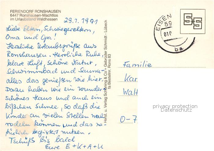 73009258 alte Postkarte Ronshausen Feriendorf Ronshausen Bungalows Schlittenfahrt postalisch gelaufen Erhaltung siehe scans [WerneD78] KatCode: 11110006632017