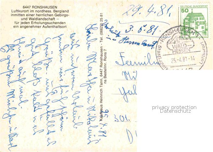 72740876 alte Postkarte Ronshausen Fliegeraufnahme Freibad Partie am Bach postalisch gelaufen Erhaltung siehe scans [LiesaD40] KatCode: 11110006632017
