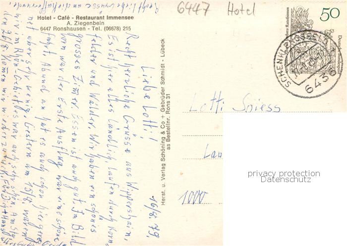 73864173 alte Postkarte Ronshausen Hotel Cafe Immensee Restaurant Terrasse Kegelbahn postalisch gelaufen Erhaltung siehe scans [WerneD78] KatCode: 11110006632017