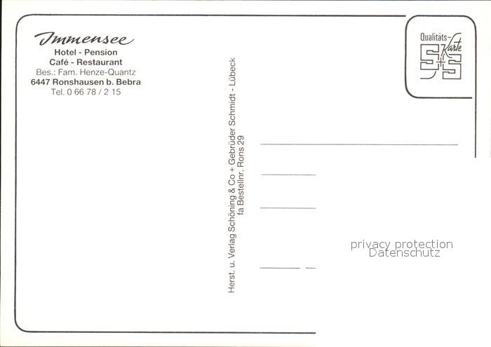 72465604 Ronshausen Immensee Hotel Pension Restaurant postalisch nicht gelaufen Erhaltung siehe scans KatCode: 11110006632017