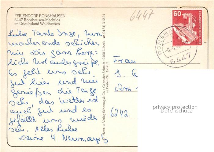 73181849 alte Postkarte Ronshausen Teilansichten Feiendorf Fachwerkhaus Kirche Tennisplatz postalisch gelaufen Erhaltung siehe scans [FriedD77] KatCode: 11110006632017