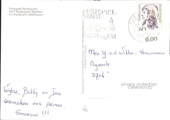 72255248 alte Postkarte Ronshausen Waldhessen Machtlos Feriendorf im Winter postalisch gelaufen Erhaltung siehe scans KatCode: 11110006632017