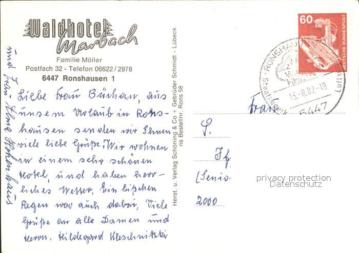 72013234 alte Postkarte Ronshausen Waldhotel Marbach postalisch gelaufen Erhaltung siehe scans KatCode: 11110006632017
