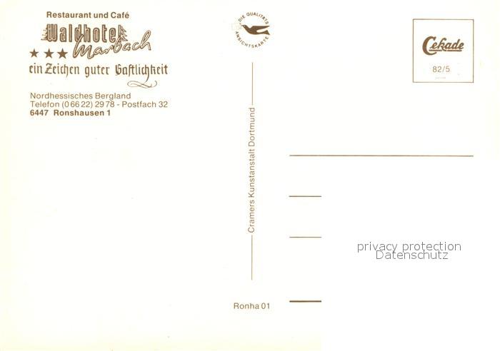 73091489 Ronshausen Waldhotel Marbach postalisch nicht gelaufen Erhaltung siehe scans [NatalD47] KatCode: 11110006632017