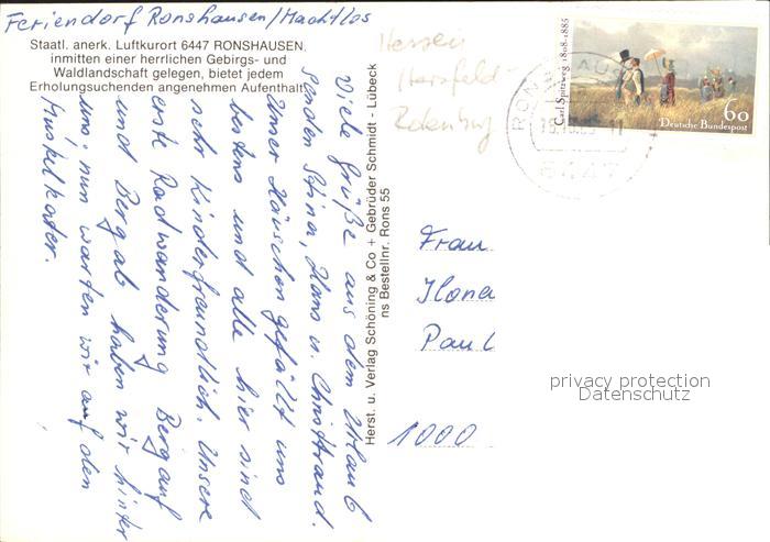 72922098 alte Postkarte Ronshausen postalisch gelaufen Erhaltung siehe scans [MatthD68] KatCode: 11110006632017