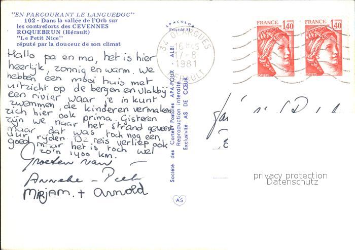 12235619 carte postale Roquebrun Le Petit Nice repute par la couceur de son climat postalisch gelaufen Erhaltung siehe scans KatCode: 11170034134232
