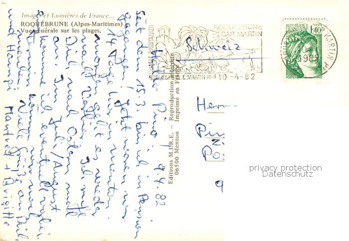 13848700 Roquebrune 06 Alpes-Maritimes Vue generale sur les plages postalisch gelaufen Erhaltung siehe scans [WerneD78] carte postale Wern Katcode 11170006206104